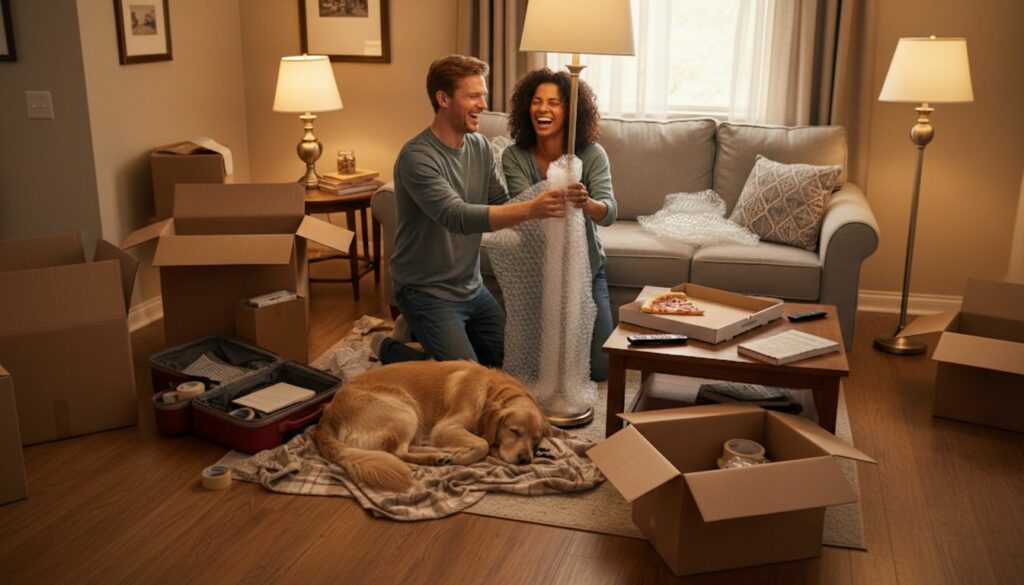 Une fois que le camion est vide et que les intervenants sont partis, ne cédez pas à la tentation de vouloir tout déballer immédiatement. Le soir du jour J, votre mission est de célébrer votre arrivée, pas de ranger votre bibliothèque. Le désordre qui vous entoure est temporaire et normal.